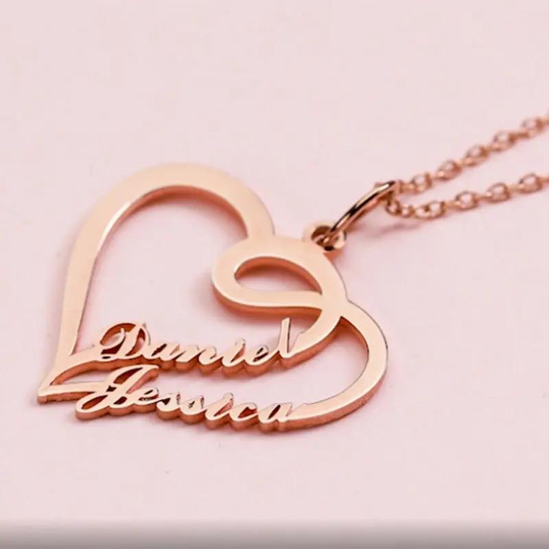 Double Heart Necklace Personalized Necklaces Pendant Gifts Stainless Steel For Women