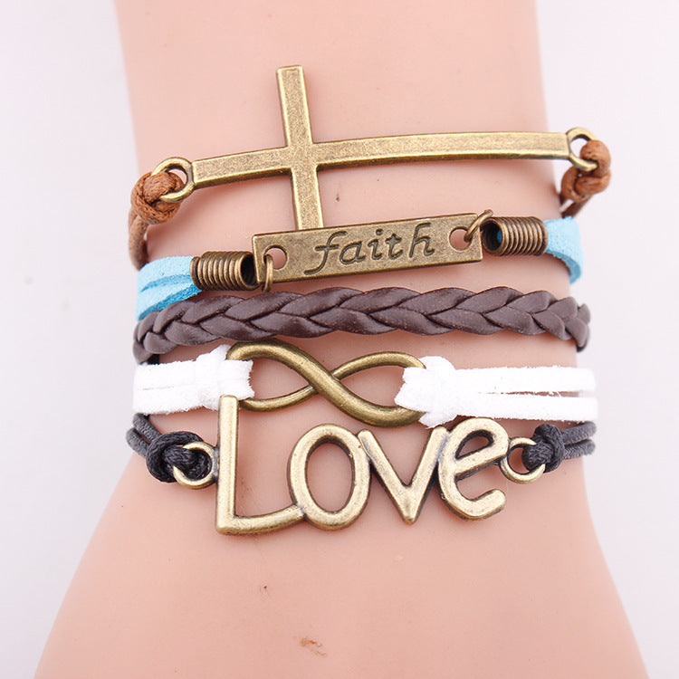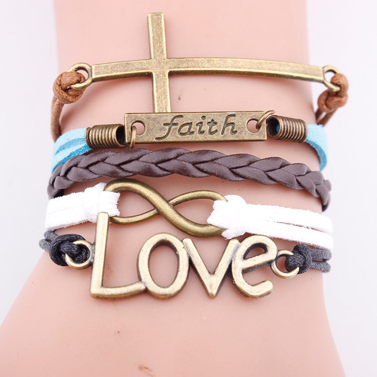 European and American bracelets love pendant fashion faith letter jewelry multi-layer woven leather rope bracelet bracelet